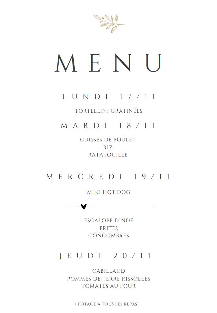 Semaine du 17/11 au 20/11 : Menu novembre 3