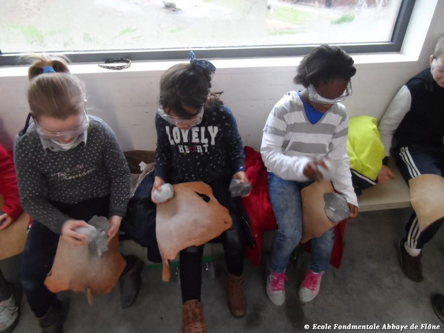 A 8h40, nous avons pris le bus pour aller au Préhistosite de Ramioul (Flémalle). C’est un centre qui donne des informations sur la vie pendant la Préhistoire. Quand nous sommes arrivés, nous avons mangé une petite collation dans le réfectoire, mis nos sacs dans un petit bac, puis nous sommes allés dans un local avec Marie, notre monitrice. Elle nous a appris à tailler du silex pour en faire un biface. On a appris qu’on pouvait utiliser le silex pour couper, gratter ou percer (ça pique !) et on a pu le sentir. On a également appris à fabriquer des outils comme les hommes préhistoriques. Dans un autre local, on a vu Marie faire du feu ! Elle nous a aussi expliqué qu’il y avait deux types de vie : les chasseurs-cueilleurs et les fermiers. Après avoir mangé nos tartines à midi, nous avons joué ensemble à la plaine de jeux : c’était chouette ! Après s’être bien amusés, nous avons fait de la poterie : chacun a ramené son pot à l’école ! Marie a joué d’un drôle d’instrument de musique au-dessus de sa tête : ça faisait un bruit de moto ! Nous avons découvert des armes appartenant aux chasseurs-cueilleurs : la sagaie et l’arc à flèche. On a essayé de lancer la sagaie avec le propulseur sur un renne en plastique : ce n’était pas très facile ! On a aussi essayé de tirer avec l’arc à flèche. Ensuite, nous avons été voir les tentes en cuir et en bois des chasseurs puis nous avons visité la maison des fermiers. Nous avons récupéré nos sacs et sommes rentrés à l’école. Heureusement que Romane avait pris son appareil photo pour garder des souvenirs de cette belle journée ! Les enfants de la classe de 3PC