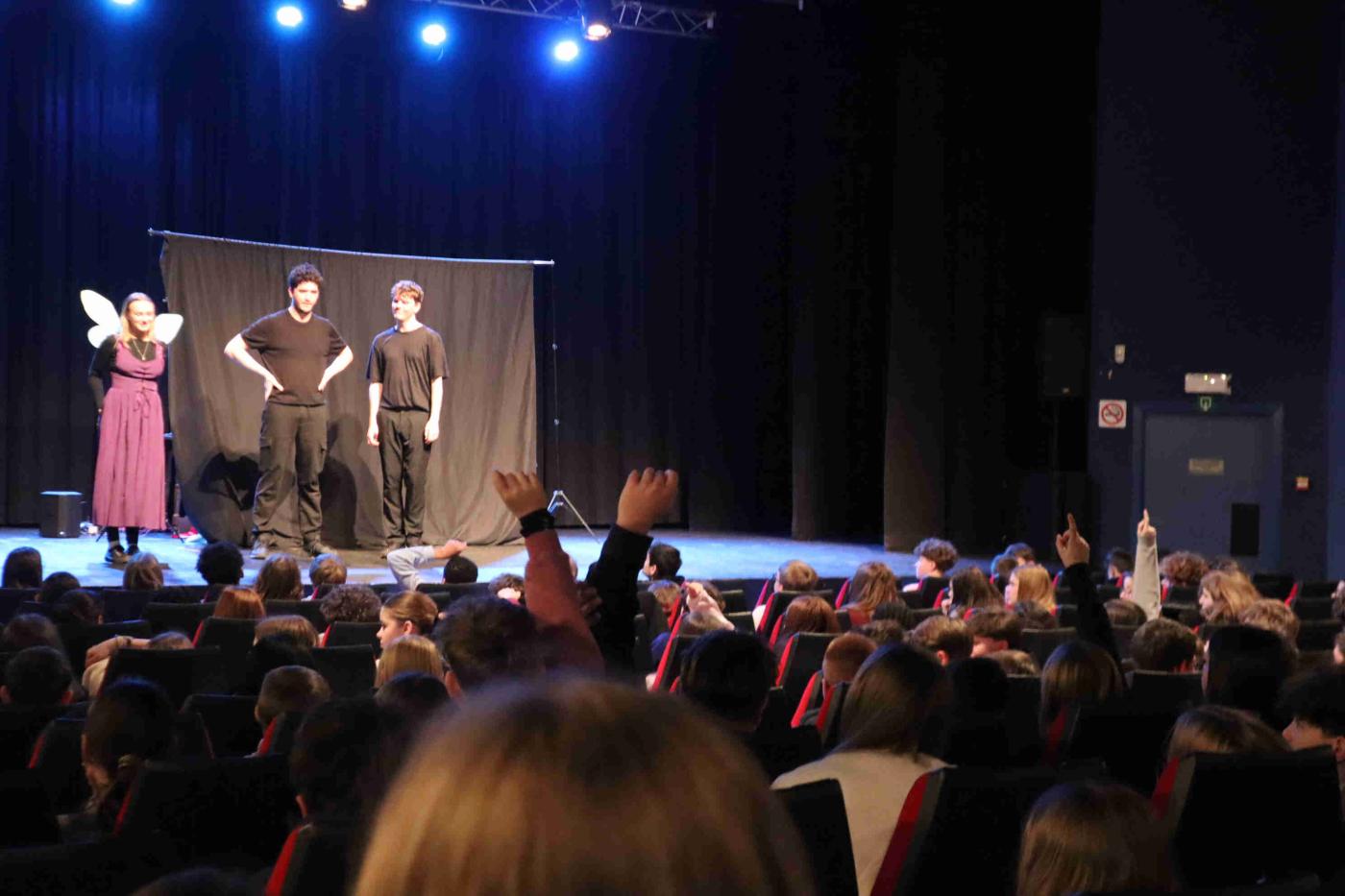 Ce 17 février, les élèves à partir de la 2ème étudiant l'Anglais ont assisté à une pièce de théâtre en Anglais. Un très bon exercice pour eux mais aussi beaucoup de rires devant ce beau spectacle.